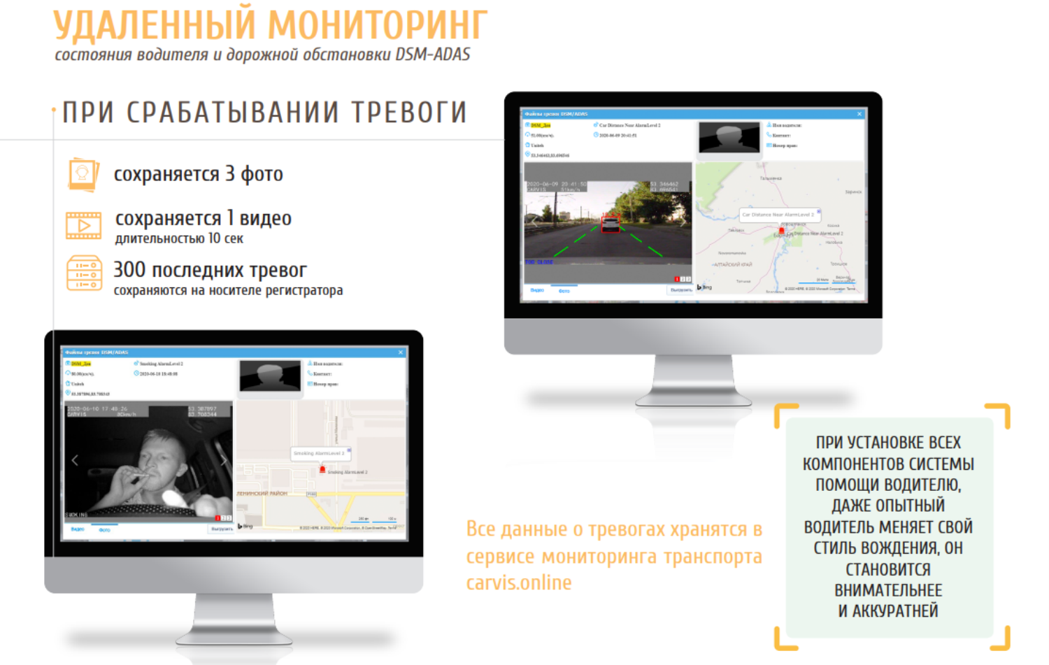 Система Сателлит DVR распознает, информирует диспетчера и предупреждает водителя